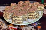 Punem pe foc zaharul si apa, lasand sa clocoteasca pana se leaga bine siropul. Adaugam nucile macinate, amestecand bine pentru omogenizare. Luam cratita de pe foc si adaugam biscuitii macinati si rahatul taiat bucatele mici. Amestecam bine, adaugam si untul, pudra de vanilie si amestecam in...