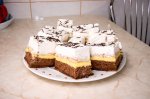 Foi: Se amesteca toate ingredientele si se framanta un aluat elastic. Se imparte in 3 parti egale din care se intind 3 foi ce se coc pe dosul tavii in cuptorul incins la 180 grade pentru 10 minute. Eu le-am intins direct pe fundul tavii,mi s-a parut mai usoara operatiunea,chiar daca s-au...