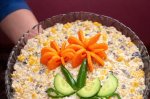 Pieptul de pui se pune la fiert cu morcovul curat de coaja . Se lasa sa se raceasca,pieptul se taie bucati mici,iar morcovul il taiem cubulete,sau felii subtiri. Ciuperciile se taie marunt si se lasa sa se scurga de zeama. Ceapa se taie solzisori,se amesteca cu porumbul scurs de...